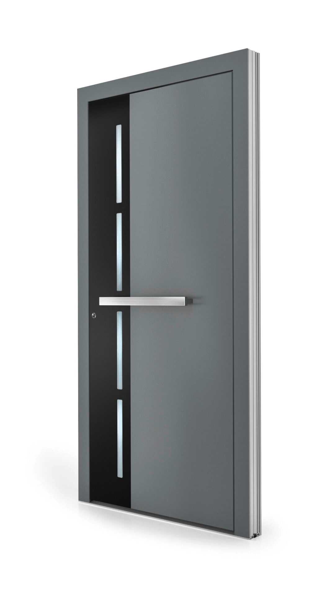 Wypełnienie drzwi wykonane jest z wielowarstwowej płyty, zapewniającej doskonałą izolację cieplną i wysoką izolację akustyczną. Aluminiowe drzwi wejściowe można również wyposażyć w czytnik linii papilarnych, keypad (klawiatura do wpisywania kodu) i inne systemy zabezpieczające. Drzwi aluminiowe są seryjnie wyposażone w pięcipunktowe ryglowanie renomowanego producenta KFV, które zabezpieczają domowników przed włamaniem. Do wyboru – niezliczone modele drzwi. Kolory, uchwyty i wypełnienia szklane można skonfigurować zgodnie z Twoimi życzeniami.